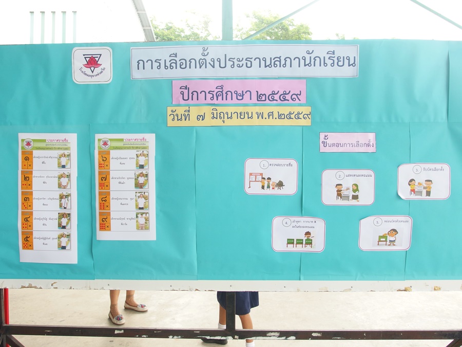 เมื่อวันอังคารที่ 7 มิถุนายน 2559 ได้จัดกิจกรรมการเลือกตั้งประธานนักเรียน ประจำปีการศึกษา 2559 ซึ่งผู้สมัครหมายเลข 7 ด.ช.จิรภัทร พูลทอง ชั้นประถมศึกษาปีที่ 6 ได้รับคัดเลือกให้เป็นประธานนักเรียนในปีนี้