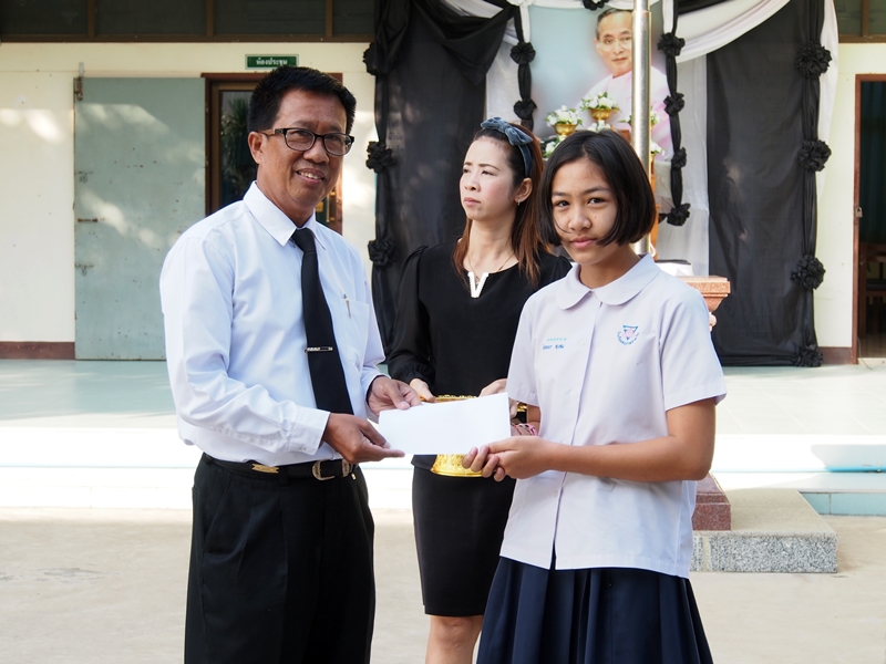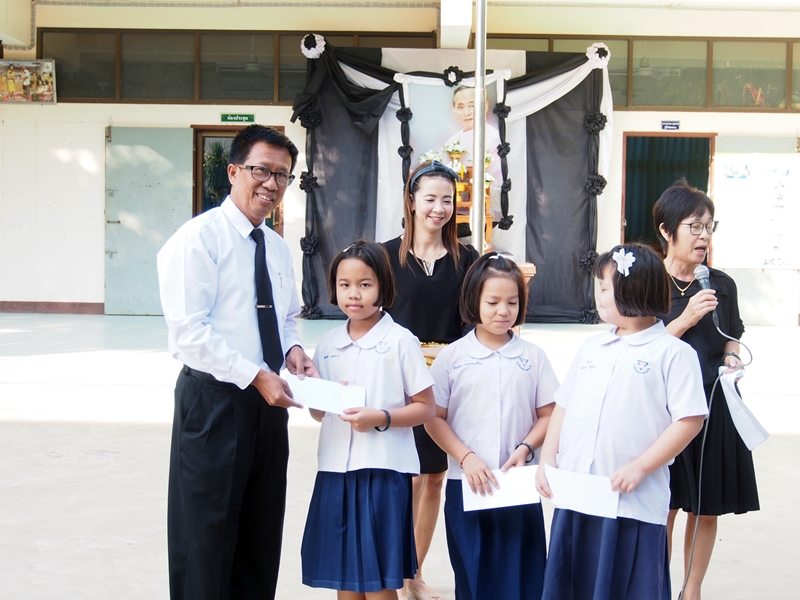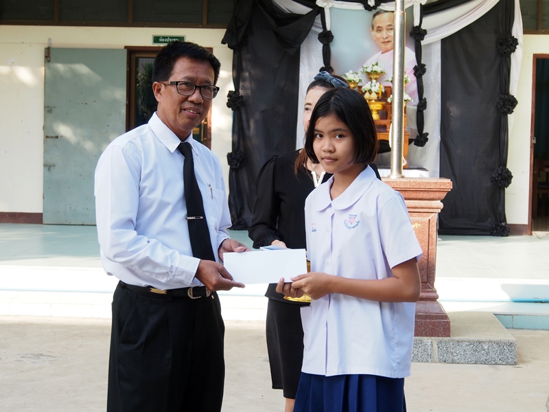 นายชูชาติ โพธิ์เพ็ชร ผู้อำนวยการโรงเรียนอนุบาลท่าตะโก มอบเงินรางวัลให้กับนักเรียนที่เป็นตัวแทนเขตพื้นที่การศึกษา ไปแข่งขันศิลปหัตถกรรมนักเรียนระดับภาคเหนือ ณ จังหวัดลำปาง เมื่อวันที่ 9 ธันวาคม 2559 |